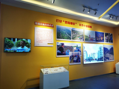 展馆二楼将新中国成立以来,特别是脱贫攻坚战打响以来黔南州取得的辉煌成绩一一列举,将全州420万群众在习近平新时代中国特色社会主义思想指引下,在州委、州政府坚强领导下,尽锐出战,坚决打赢脱贫攻坚战,奋力与全国全省同步小康的生动场景详尽的展现在大家面前。