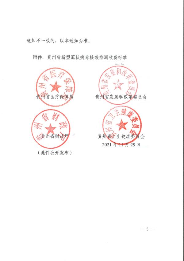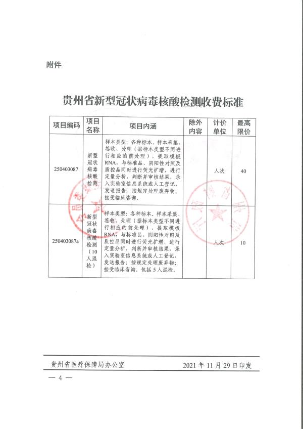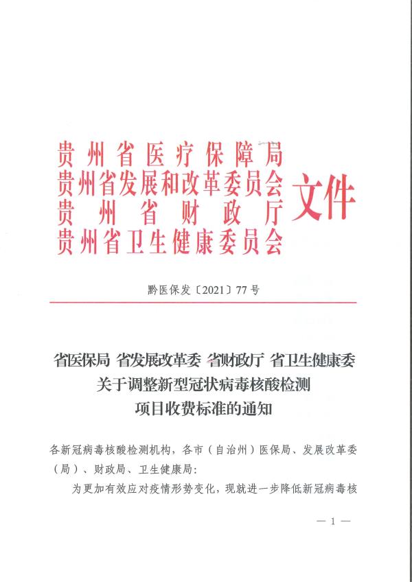 贵州省医保局等四部门关于调整新型冠状病毒核酸检测项目收费标准的通知