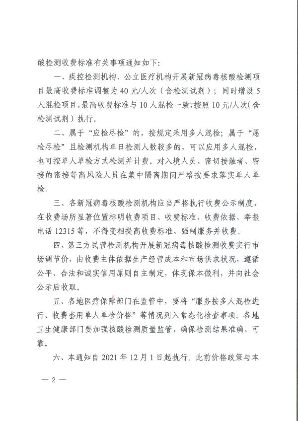 黔医保发〔2021〕77号-省医保局 省发展改革委 省财政厅 省卫生健康委关于调整新型冠状病毒核酸检测项目收费标准的通知