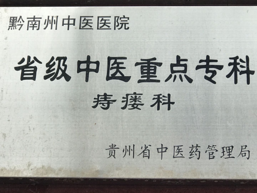 黔南州中医院肛肠科是省级重点专科,贵州省肛肠科无痛病房,优质护理病房建设单位,中华中医药学会肛肠分会常务理事单位,黔南州医学会肛肠分会主任委员单位,贵州中医药大学肛肠专业硕士研究生临床培养基地,拥有肛肠疾病重点专科研究室,经过多年医疗实践,已成为黔南地区规模最大、管理最规范的肛肠专科。在继承、挖掘、整理中医专科治疗方法的基础上,结合现代科技手段,针对不同疾病患者制定了具有中医特色、疗效肯定的围手术期治疗方案,通过中西医结合方法,以精湛的医疗技术水平及优质的护理服务,不但能使患者在治疗过程中轻微疼痛、甚至无痛,而且能减少术后并发症的发生,促进创面愈合,缩短住院时间,提高患者住院期间的舒适度。