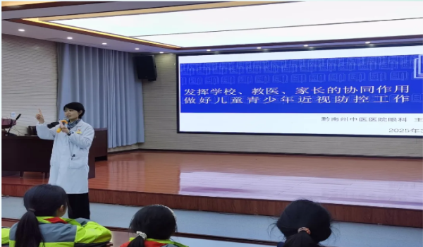 同时黔南州中医医院眼科张清主任还为师生们带来近视防控主题讲座,通过生动案例解析近视成因、危害及防控措施。讲座还设置互动问答环节,学生们也积极参与。