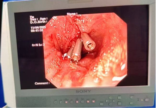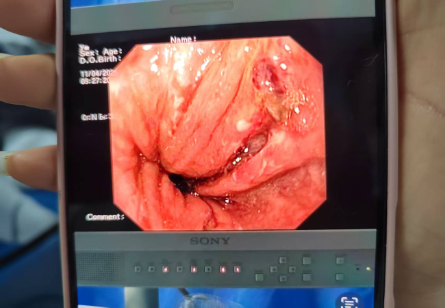 快速响应,精准止血,让危机止步于协作 患者病情危重,结合病情考虑急性上消化道出血,立即邀请消化内科急会诊,消化内科执行主任(广州医科大学附属医院消化内科主任医师)詹原泉主任及消化内科曾璐副主任医师快速评估患者后于急诊EICU行急诊胃镜检查及胃镜下止血,镜下见贲门至食管下段长条撕裂糜烂灶,镜下予8枚钛夹夹闭创面后出血停止;为后续治疗赢得关键时间;经过后续为期11天的治疗,患者康复出院。