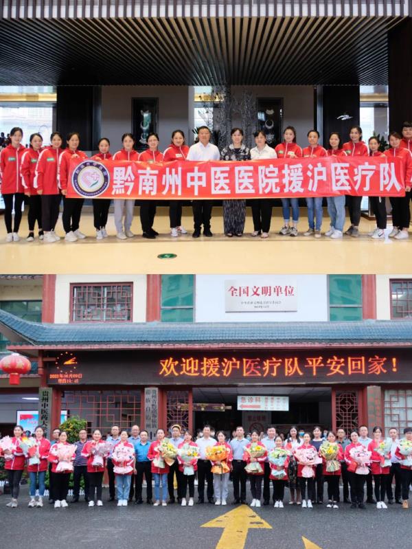 白衣执甲,星夜驰援,守望相助,众志成城。4月14日,接到上级通知,连夜收拾行李,4月15日,一声令下,黔南州中医医院援沪中医分队16名队员整装出行,星夜抵沪。受党组织的重托担任黔南州中医医院援沪中医分队的领队,我深感任务艰巨、使命光荣。方舱奋战33天,队员们团结互助、同舟共济,经受住了巨大考验,圆满完成任务,做到了去时无惧、归时无恙!