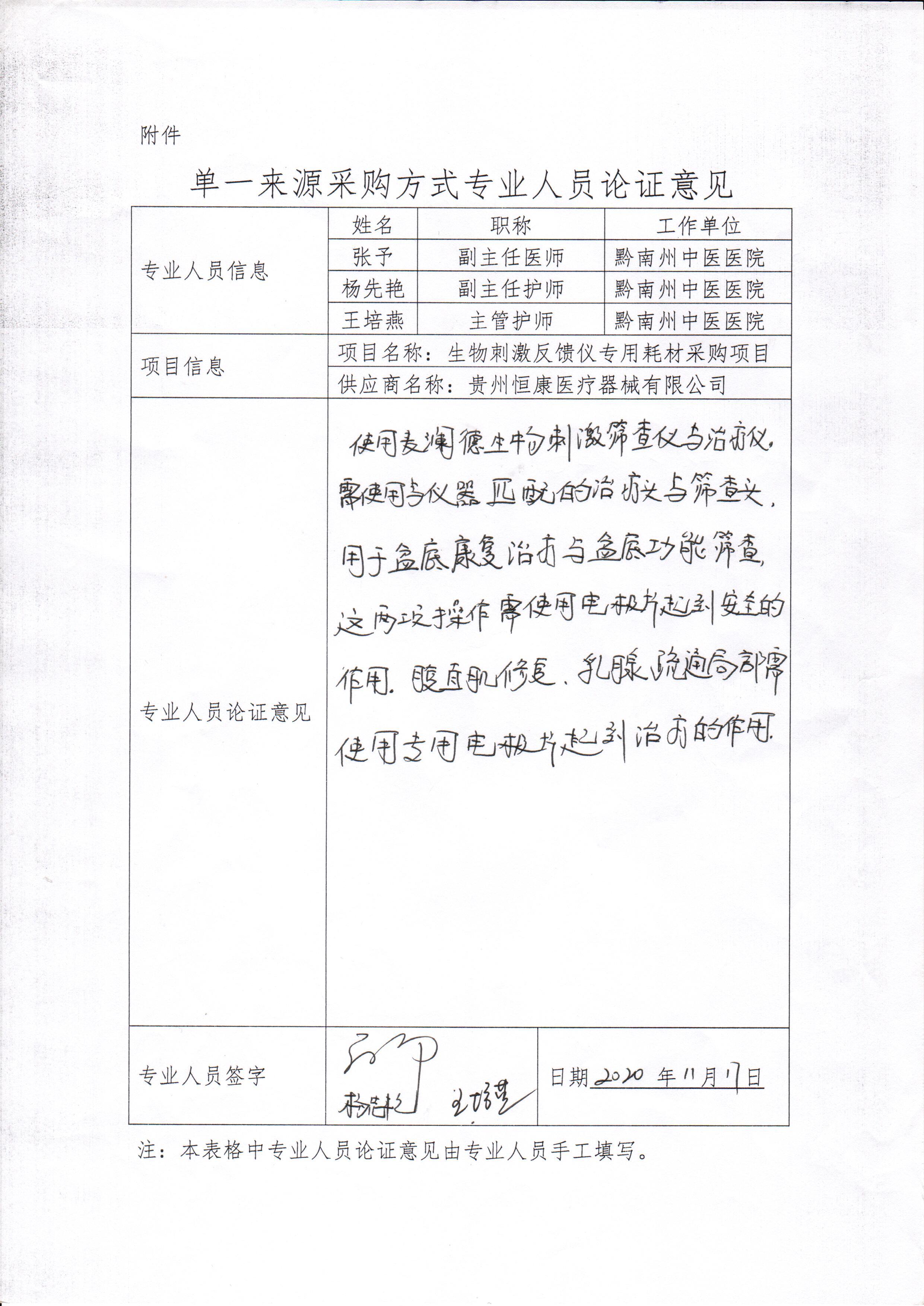 采用单一来源采购方式的原因及说明:麦澜德生物刺激反馈仪及治疗仪需使用原厂生产的专机配套耗材