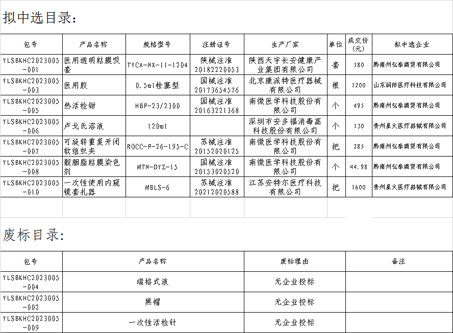 2023年医用耗材院内遴选采购结果公示