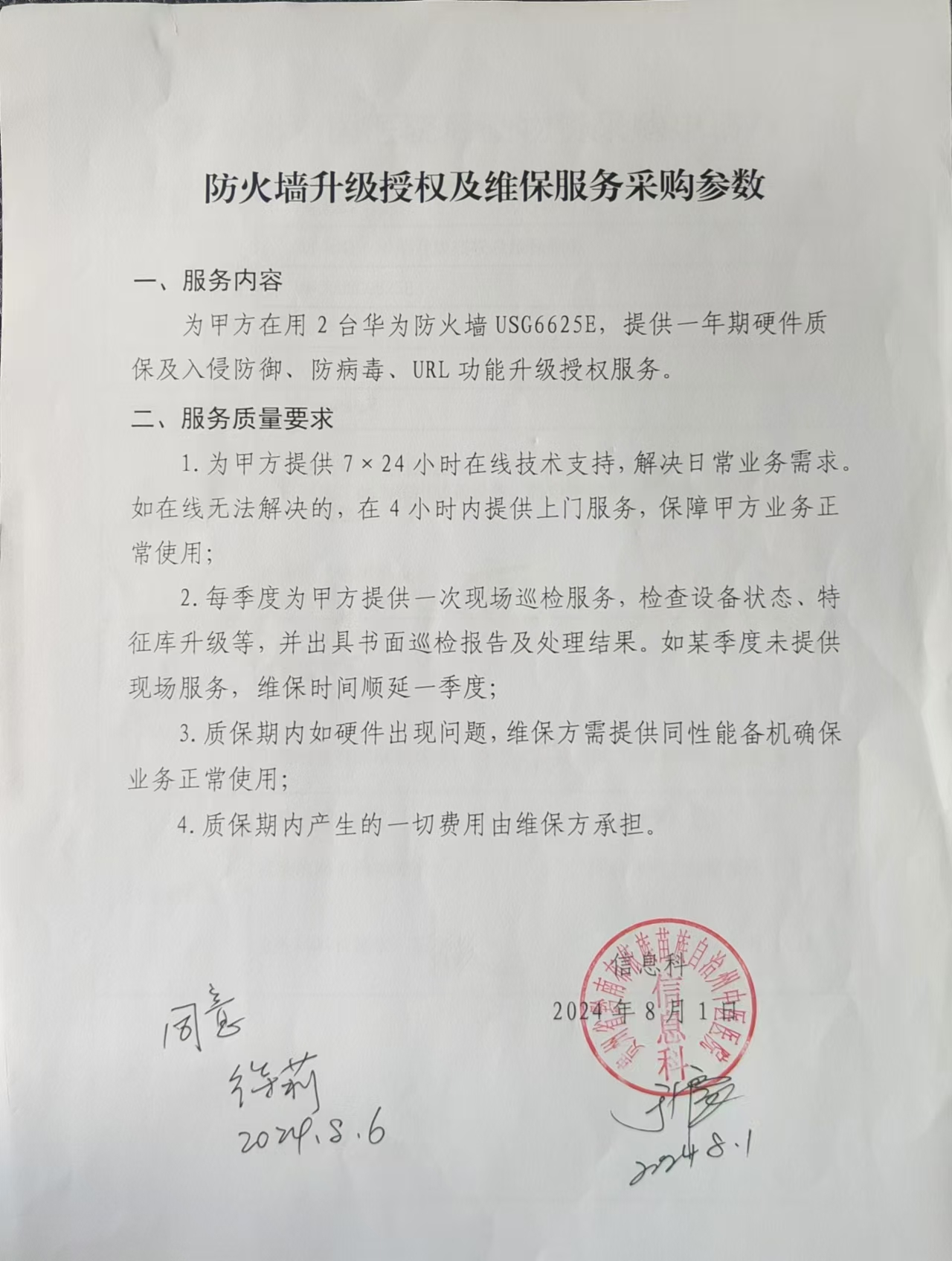 黔南州中医医院医保区安全设备维保 | 详见第五条附件-防火墙升级授权及维保服务参数 | ||