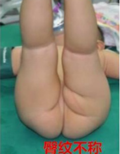 *两侧大腿内侧皮肤皱褶不对称,患侧皮皱加深增多;