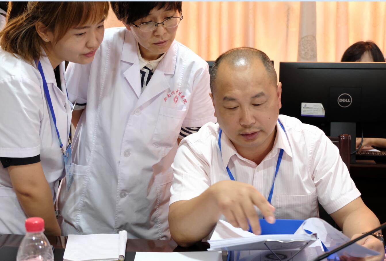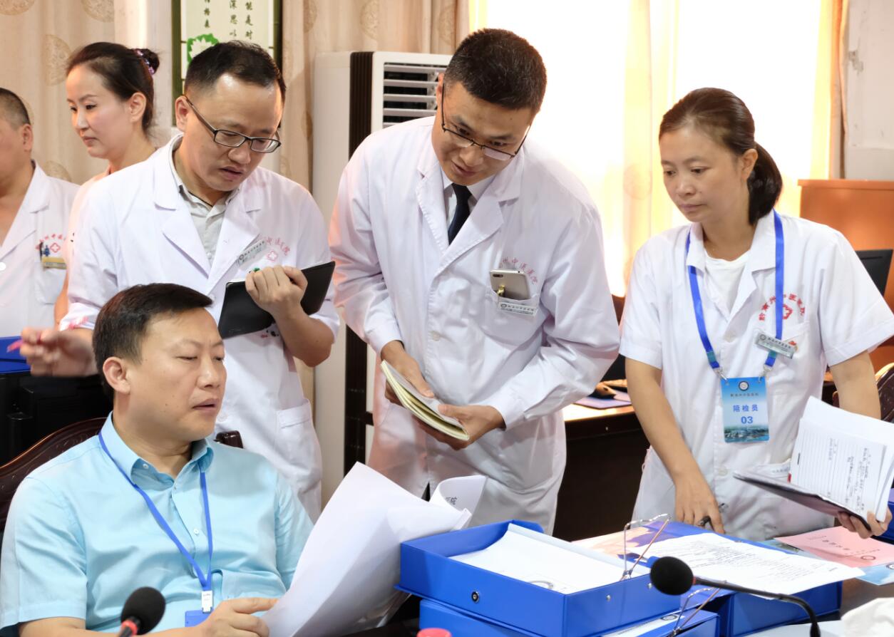 2019年8月13日上午,贵州省胸痛中心联盟专家莅临我院,对我院胸痛中心建设工作进行预检。黔南州卫生健康局副局长王先坤,黔南州卫生健康局中医科科长屠建勋,我院党委书记杨建平、副院长张海(主持工作)、党委副书记尹旺旭,纪委书记李莉萍,副院长胡德馨、覃家永、李浩、李亚娜,心内科、急诊科医护人员以及医务科、护理部等相关职能部门负责人参加了汇报会。