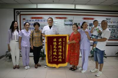 2020年7月8日,患者刘阿姨出院三个月后再次返院,将一面写有“医德高尚暖人心 医术精湛除病痛”的锦旗送到我院骨伤科关节病区。刘阿姨曾经在我院骨伤科住院两次,一次是2019年7月因左侧内、外踝骨折于我院骨伤科住院手术治疗,第二次是今年4月,术后8个月返院取内固定。回忆起两次住院的经历,刘阿姨激动的说,“感谢甘医生,医德高尚、医术精湛,手术效果又好,我恢复也快。护士姑娘们热情开朗,医生们都很负责,今年4月份来取内固定,我就像“回家”一样”。患者给医生送锦旗表达对救治的感激之情,一句“像回家一样”让医护们感动万分,我们一直努力的,就是希望能在患者受到病痛伤害时,给与他们在遭遇不幸中的一点关爱。接到锦旗的关节病区甘龙飞医生对刘阿姨表示感谢,他说“救死扶伤本就是我们的本职,锦旗我们收到过很多,但每一次收到心里都会很感动,因为每一面锦旗、每一次患者高高竖起的大拇指、每一次病人的一句‘我是通过朋友介绍来的,他也是你们治好的’都代表了患者的肯定、信任和鼓励”。