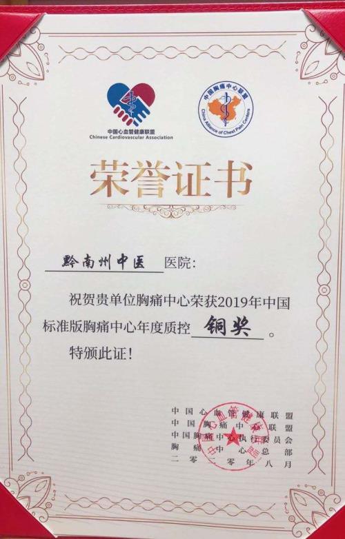 在这充满着丰收和喜悦的初秋,我院胸痛中心喜获中国胸痛中心执行委员会、胸痛中心总部颁发的“2019年中国标准版胸痛中心年度质控铜奖”。这是对我院2019年度及2020上半年胸痛中心运行工作的充分肯定。我院胸痛中心团队备受鼓舞!