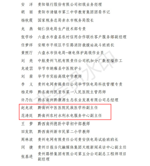 近日,团省委联合省人社厅共同组织开展2018-2019年度贵州省青年岗位能手(标兵)评选活动,经逐级评选和严格审核最终认定50名优秀青年获得“贵州省青年岗位能手”荣誉称号,我院民族医学科副主任赵龙波获此殊荣。
