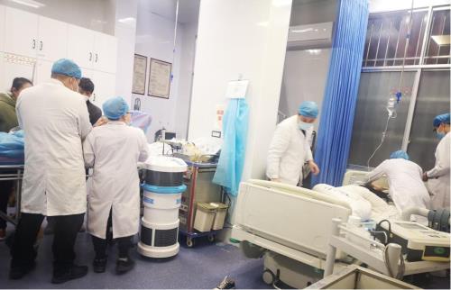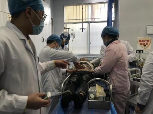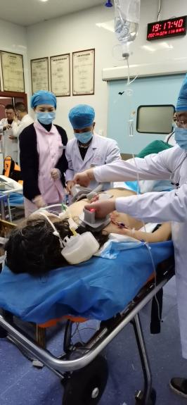 19时08分,由120救护车送来一名车祸伤致意识障碍的患者,患者瞳孔散大固定,对光反射消失,无自主呼吸,经1小时02分的全力抢救,患者恢复窦性心律,病情平稳后送入重症医学科进一步抢救治疗。
