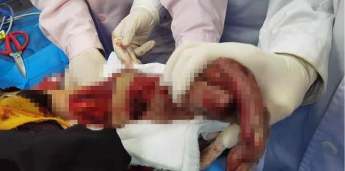 患者在家中受大面积创伤,立即送往医院救治,经科室人员紧急救治后,患者伤情平稳好转,由我科医护人员转入专科进一步住院治疗。