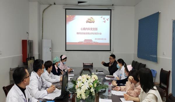 2021年3月15日,黔南州中医医院心内科党支部召开2020年度组织生活会。院党委书记尹旺旭同志以普通党员身份参加会议,带头作自我批评,接受党内组织生活教育。会上,心内科党支部书记李莲同志通报了2020年度支部工作情况,并代表党支部作深刻查摆检视剖析及下一步整改措施。随后支部各党员逐一查摆、剖析问题,认真严肃作了批评与自我批评。各党员之间开诚布公、推心置腹,发言踊跃,敢于自我批评,相互批评深刻,敢于揭短亮丑,真正触动大家的思想灵魂,真正起到帮助同志、增进团结的目的,达到红红脸、出出汗的效果,会议达到预期效果。