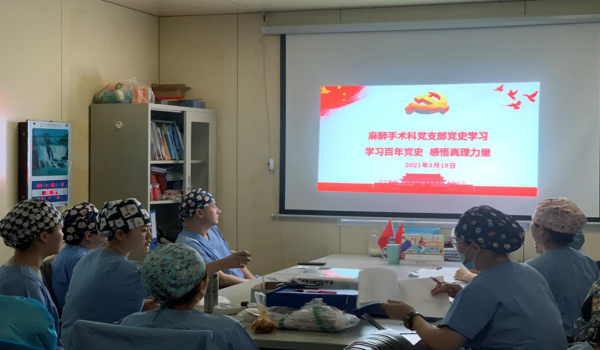 为迎接中国共产党建党一百周年,积极响应院党委关于学习党史“不忘初心、牢记使命”主题教育的决定,正确把握党的主要路线,2021年3月19日下午,麻醉手术科党支部组织全体医务人员在护理办公室举行了“学党史、听党话、跟党走”党史学习教育。在学习党史中坚守初心。历史是最好的教科书,是党员干部的一门必修课。自1921年诞生之日起,我们党就确立了马克思主义唯物史观、人民立场与群众观点。为中国人民谋幸福,为中华民族谋复兴,是中国共产党人的初心和使命,是激励一代代中国共产党人前赴后继、英勇奋斗的根本动力。