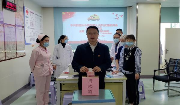 2021年04月19日,在心内科党支部倡导下,支部党员联合心内科、导管室医护人员,开展用心学党史,真心办实事,助困扶贫,强化服务主题党日活动。活动发起爱心捐赠,帮扶家庭困难患者王阿姨,把党史学习成效转化为工作动力和实际行动,在为群众办实事中增长才干,搭建与患者沟通桥梁,强化服务理念,为群众分忧解难。