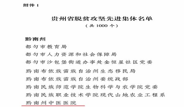 4月23日上午,贵州省脱贫攻坚总结表彰大会在贵阳隆重举行,黔南州中医医院荣获贵州省脱贫攻坚先进集体。