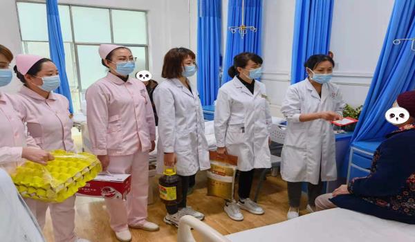 04月28日下午妇产科主任童莉同志、产科主任张予同志组织妇产科医护人员带着米、油、鸡蛋等生活物品及爱心捐款,带着大家满满的关心,看望了杨婆婆。童莉主任将爱心捐款送到杨婆婆手中时,朴实善良的杨婆婆及其孙女激动地热泪盈眶,不停地说着“谢谢,谢谢,谢谢......。”这才有了文中开头的一幕。