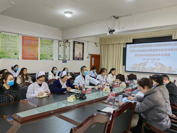 12月13日,贵州省中管局组织省中医脾胃专业医疗质量控制专家组一行3人对我院脾胃内科进行贵州省中管局省级中医重点专科现场评审验收。专家组成员包括省中医脾胃病医疗质量控制中心主任周素芳、省中医脾胃病医疗质量控制中心副主任赵琦,省中医脾胃病医疗质量控制中心秘书李艺锋。