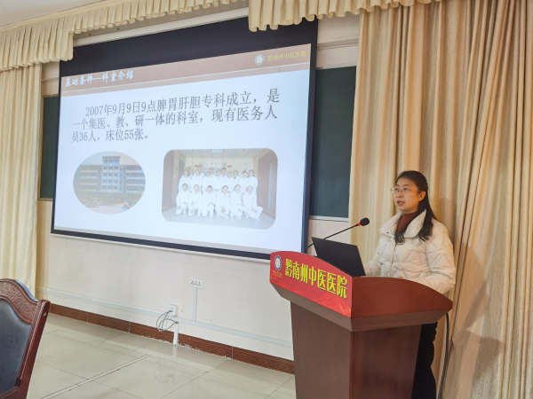 副院长李浩,医务科主任陈磊、护理部主任徐艳群及相关科室负责人参加评审验收会。会议由李浩副院长主持。脾胃内科主任张华根据科室实际情况,从基础条件、基础管理、临床能力、特色优势、人员队伍、科学研究六个方面详细介绍了脾胃内科建设情况,建设期间取得的成果、达到的专业技术能力及专业水平。