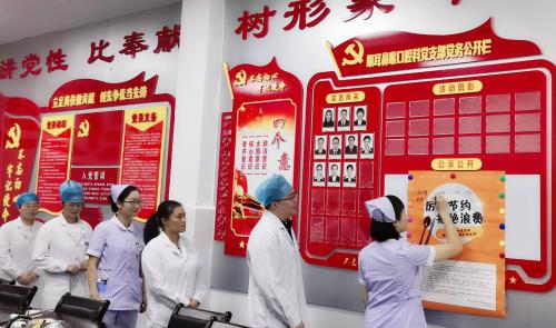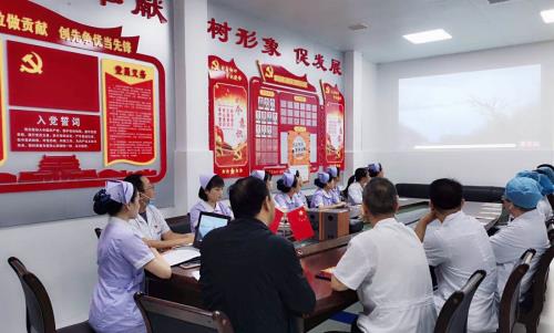 主题党日活动中,院党委副书记胡德馨与眼耳鼻喉口腔科党支部全体党员、预备党员、发展对象、入党积极分子、群众代表在本支部党员活动室诵读党章之后一起观看视频《水稻的一生》,回顾了水稻从秧苗到盘中餐的过程,倡导厉行节约,从小事做起,从一点一滴做起,从每一餐做起的饮食节约氛围。学习了“厉行节约,拒绝浪费从我做起”的宣传材料,向大家宣传餐桌文明,树立“打包不丢人,浪费更可耻”的思想信念,号召大家行动起来,节约粮食,反对舌尖上的浪费,让节约成为一种习惯,成为一种风尚。