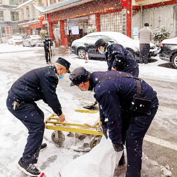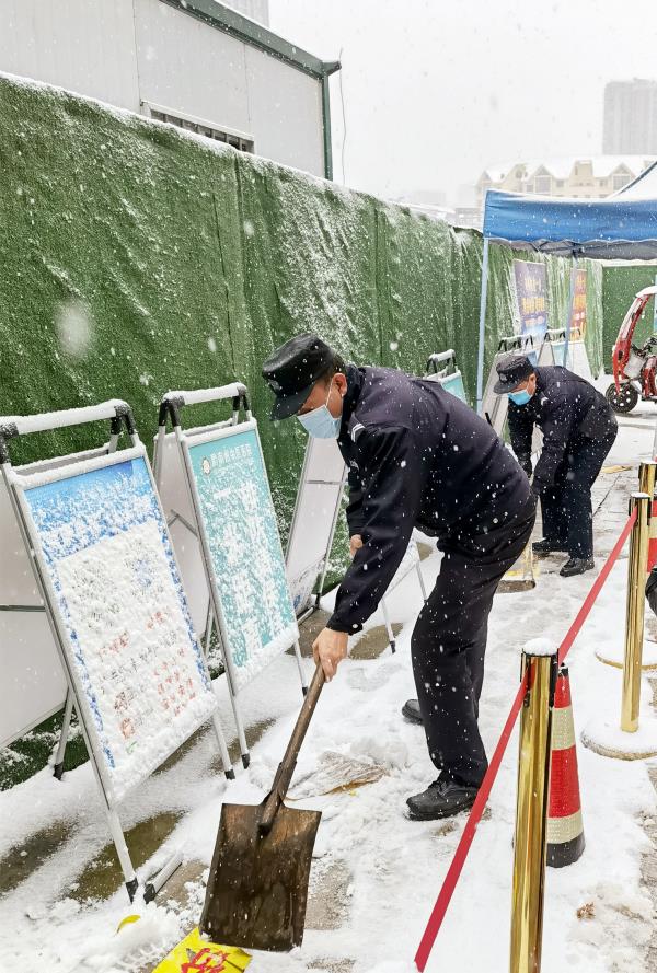 为了确保就诊群众出行安全,消除积雪给患者带来的安全隐患,2月22日清晨,医院后勤总务部门联合保卫科开展扫雪除冰工作,通畅院内主要道路,在易滑路段铺设防滑纸壳、撒盐等措施,大家在寒风中团结协作,你铲我扫,配合十分默契。热火朝天的铲雪场面给这寒冷的冬天带来了浓浓暖意。另外,工作人员定时清理帐篷、顶棚上的积雪,以免发生坍塌事故,全力保障患者的安全就医。