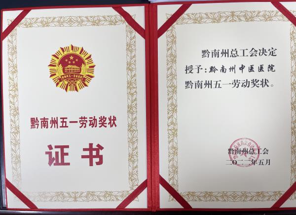 黔南州中医医院在本次表彰中荣获“黔南州五一劳动奖状”荣誉称号,这一集体荣誉,凝聚了全院职工的汗水和智慧,记录了中医人昂首奋进的骄傲足迹。黔南州中医医院党委副书记杨正贤代表医院领取了荣誉奖状。同时,黔南州中医医院心内科主任李莲荣获“黔南州五一劳动奖章”。