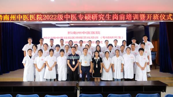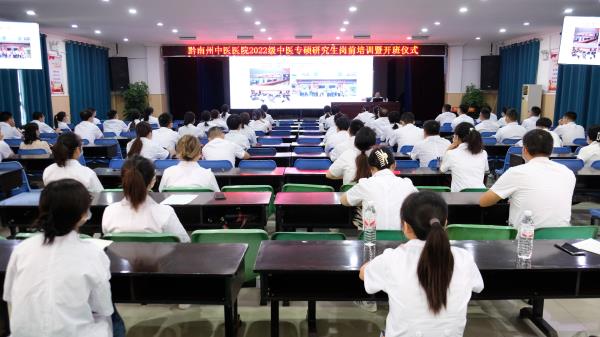 8月29日上午8:30,黔南州中医医院2022级中医专硕研究生岗前培训暨开班仪式在黔南州中医医院深援楼八楼会议室举行。院党委副书记杨正贤出席本次开班仪式并讲话,32名专硕研究生参加培训。