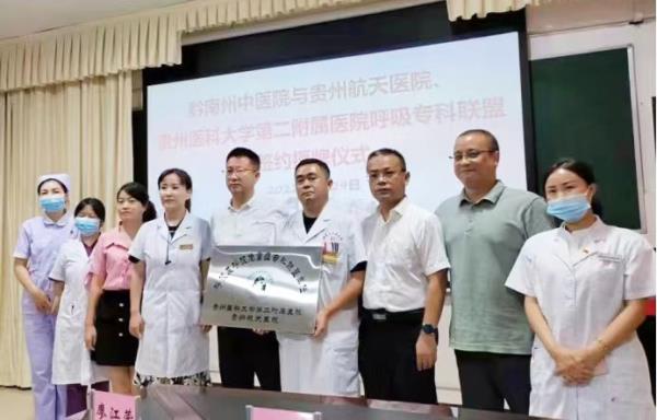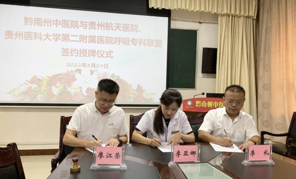 8月29日,贵州航天医院、贵州医科大学第二附属医院、黔南州中医医院呼吸专科联盟签约授牌仪式暨学术讲座在黔南布依族苗族自治州中医医院举行。贵州航天医院呼吸与危重症医学科廖江荣主任、贵州医科大学第二附属医院呼吸与危重症医学科李礼主任、贵州航天医院全科医学科科主任陈琪、全科医学科护士长陈昌敏应邀参会。黔南州中医院院长李亚娜教授致欢迎词,并介绍医院现状及未来发展规划,周棉勇主任主持会议。