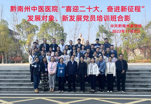 为深入学习贯彻党的二十大精神,进一步严格党员队伍的“入口关”,增强入党的“敬畏感”,上好入门“第一课”,确保发展对象、新发展党员的质量,加强党员干部队伍建设,黔南州中医医院举办“喜迎二十大,奋进新征程”发展对象、新发展党员培训班,并于11月8日上午举行开班典礼,院党委书记尹旺旭出席本次开班仪式并作动员讲话,全院共42名发展对象、新发展党员齐聚州委党校,充电蓄能。