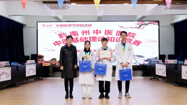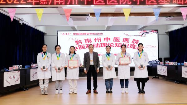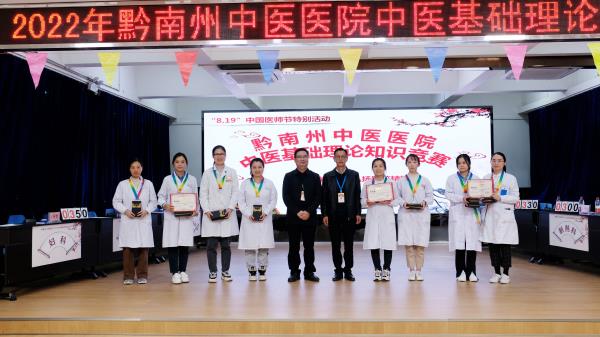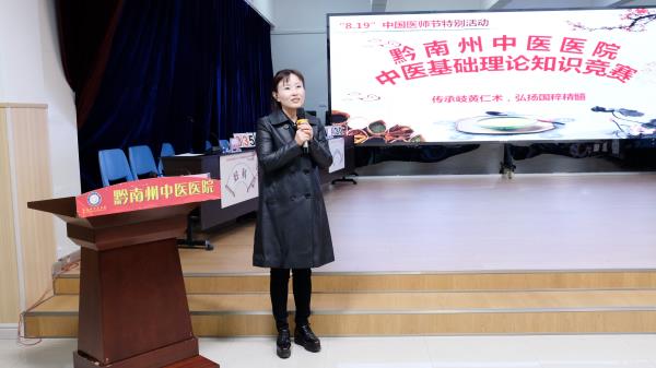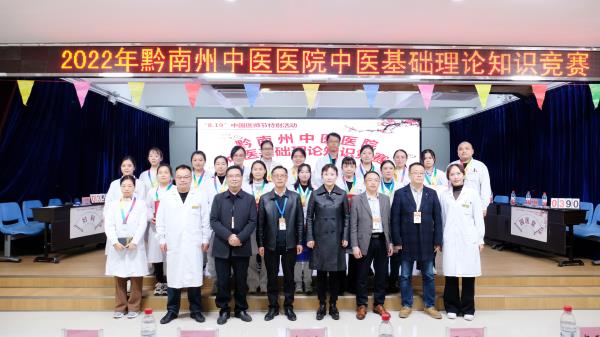 为夯实全院临床医师及药剂师中医基础理论,进一步弘扬中医药文化,宣传推广中医基础知识,充分发挥中医特色与优势,积极探索运用中医主导的方法和技术,在全院营造良好的中医药文化氛围,黔南州中医医院中医基础理论知识竞赛决赛在2022年11月22日圆满落下帷幕,院党委书记尹旺旭、院长李亚娜、院党委副书记杨正贤、纪委书记马戎、副院长苏军、州民族医院副院长何江出席本次竞赛。