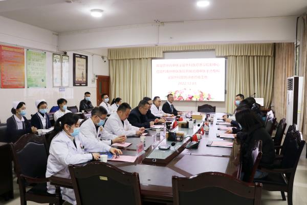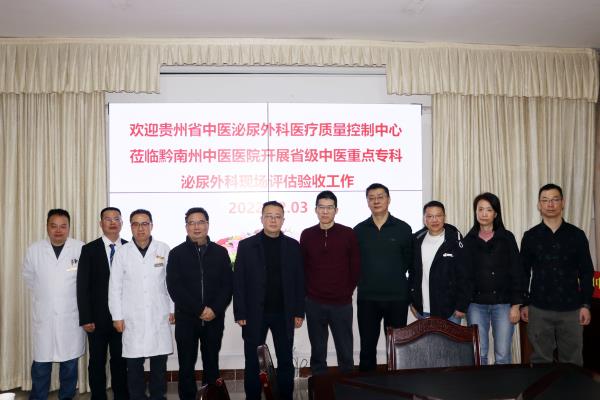 2022年12月3日,贵州省中管局组织中医泌尿外科医疗质量控制专家组对我院泌尿外科进行贵州省中管局省级中医重点专科泌尿外科现场评审验收工作。专家组成员包括贵州省中医泌尿外科医疗质量控制中心主任委员、贵州中医药大学第二附属医院泌尿外科主任肖友平教授,贵州省中医泌尿外科医疗质量控制中心副主任委员、贵州省中医药大学第一附属医院泌尿外科主任常青教授,贵州省中医泌尿外科医疗质量控制中心副主任委员、贵州省中医药大学第二附属医院泌尿外科副主任范凯教授,贵州省中医泌尿外科医疗质量控制中心委员、贵州省中医药大学第二附属医院泌尿外科黄从军教授,质控中心秘书阮明。我院副院长苏军、黔南州民族医院副院长何江、医务科副科长刘勇、肿瘤科主任兼医务科副科长黄军教授、泌尿外科主任黄桂军教授、肾内科副主任汪靖婕主任医师及泌尿外科全体医务人员参加了评审验收会。会议由肖友平教授主持。