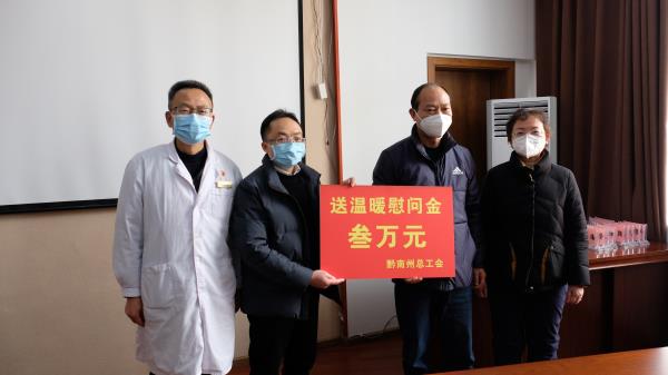 黔南州中医医院党委副书记杨正贤表示,真诚感谢总工会给予的温暧,疫情无情,人间有情,“心中有信仰,脚下有力量”,全院职工定会众志成城、共克时艰,全力做好患者的救治工作。黔南州中医医院将全力以赴,努力工作,着力做好重点人群的防护和救治工作,为人民群众筑牢健康屏障。