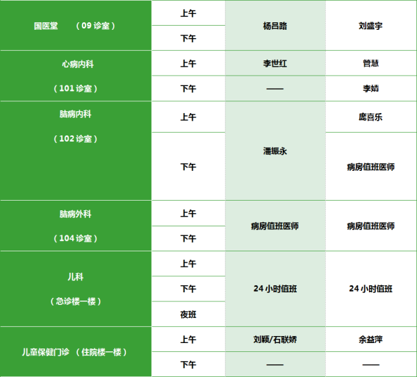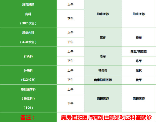 黔南州中医医院周末(4.22-4.23)门诊排班表