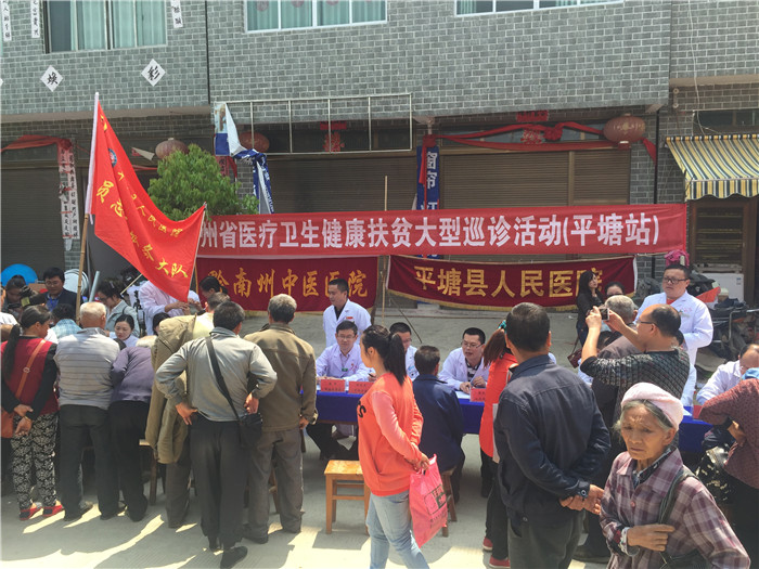 当天下午,由黔南州中医医院和平塘县医院联合组建的健康扶贫大型巡诊医疗服务队(平塘站)义诊服务队一行25人赴距离平塘县城约17公里的平塘县平舟镇农兴村为当地百姓免费提供健康咨询、血压测量,对常见病、多发病进行初步诊断。专家们热情地接待每一位前来咨询的群众,耐心地询问情况,并仔细作体格检查,认真解答每一位百姓的疑难问题。此次义诊活动的开展,方便了边远群众就医,有效缓解贫困群众看病难问题,受到了广大群众的欢迎和赞赏,切实提高了群众的基本医学常识。