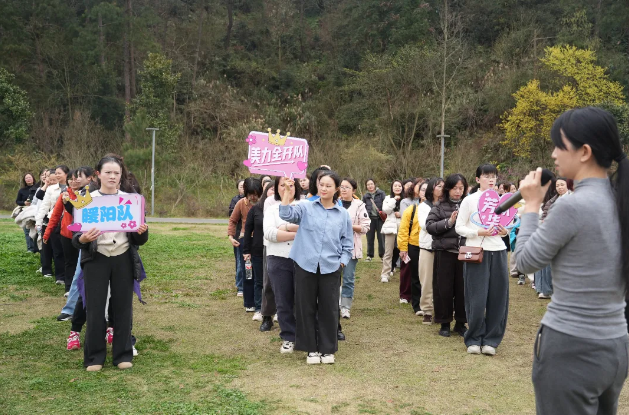 本次主题活动精心设计,融趣味互动、团队竞技与休闲健身于一体,既让女职工们在自然中舒缓身心,也在协作中凝聚力量。活动现场,女职工们结伴而行,沿着步道轻盈前行,春日的清风拂面而来,沿途的景致赏心悦目,大家边走边聊、欢声笑语,尽情舒展身心,展现出朝气蓬勃、积极向上的精神风貌。抵达山顶后,“稳如泰山”蒙眼踏步趣味游戏有序开展,参赛女职工们专注投入、步调稳健,失误时的莞尔一笑、成功时的欢呼喝彩,让现场氛围愈发轻松热烈,充分展现了大家活泼开朗、乐观豁达的一面。