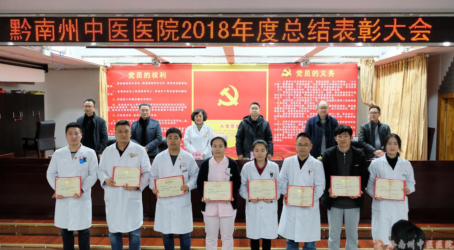 2019年1月29日,百余名干部职工齐聚一堂,迎来了黔南州中医医院一年一度的总结表彰大会。会议由党委副书记、纪委书记尹旺旭同志主持,副院长常智玲、张海、覃家永、李浩,党委委员、总会计师徐志庆同志出席了表彰会。